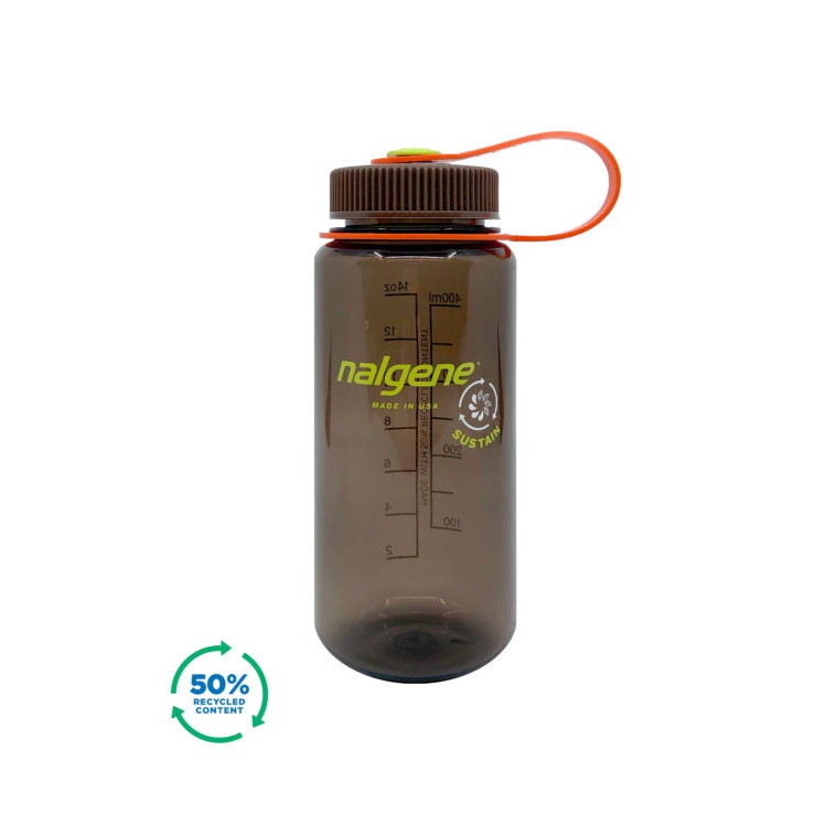 Nalgene Wide Mouth Sustain Water Bottle 0.5 L – легка, міцна і зносостійка пластикова пляшка для води та інших напоїв. На 50% складається з сертифікованих перероблених матеріалів. Призначена для подорожей, туристичних походів, активного відпочинку та повсякденного використання.