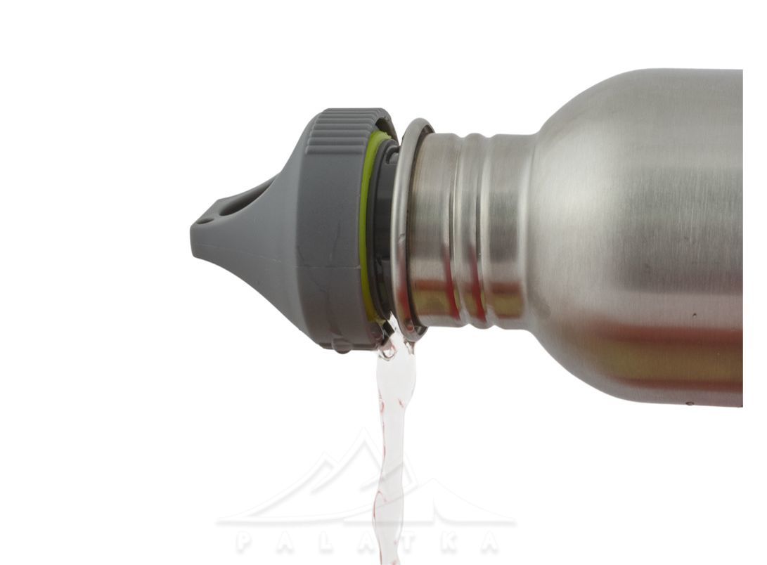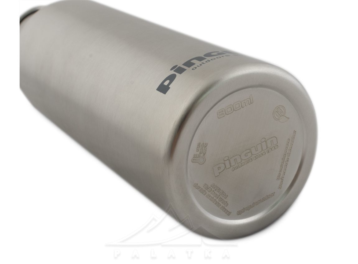 Одностінна пляшка з нержавіючої сталі об’ємом 800 мл з кришкою, що закручується. Виготовляється з харчової сталі, що містить 16-18% хрому і 10-14% нікелю. Вона дуже стійка до корозії.