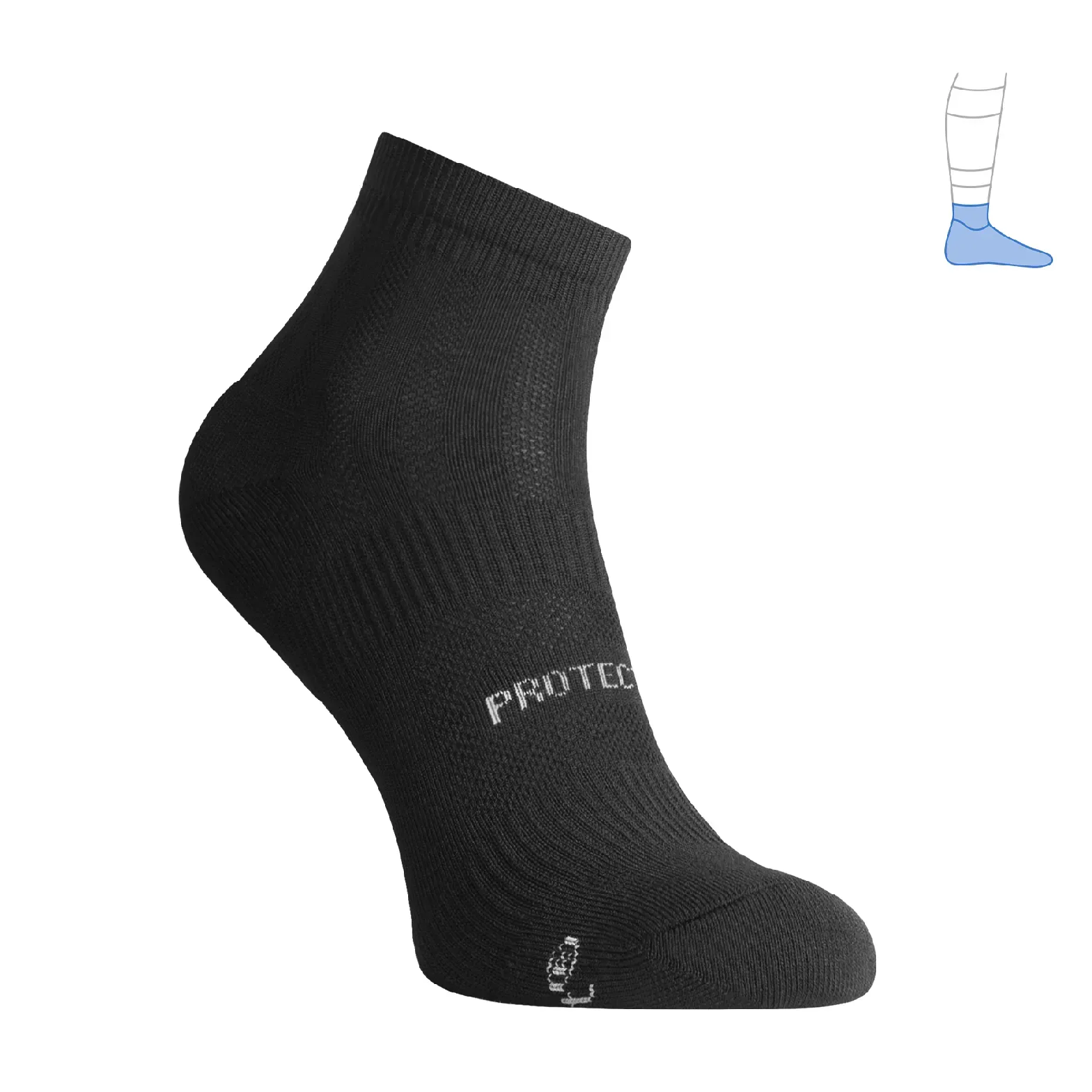 Літні захисні функціональні шкарпетки короткі з колекції DryFeet®, що швидко відводять вологу та забезпечують комфорт і захист ніг. Радимо використовувати при температурі повітря від +15°C до +35°C (залежно від активності, одягу і взуття). Дані шкарпетки розроблено для занять спортом (біг в межах марафону, спортивне орієнтування, велоспорт, біг з перешкодами – OCR, фітнес, скандинавська ходьба і т. д.). Вони також стануть у пригоді чоловікам, жінкам і підліткам для походів, зокрема гірських (h ≤2000 м), рибальства, збирання грибів, тривалих піших прогулянок тощо. Модель виготовлено за технологією DryFeet® повністю зі спеціальних синтетичних волокон, які гарантують швидке відведення вологи під час активного руху, сталу пружність та еластичність і високу зносостійкість. Ці шкарпетки підійдуть для будь-якого невисокого взуття з сіткою чи вентиляційними отворами або з «дихаючою» мембраною.