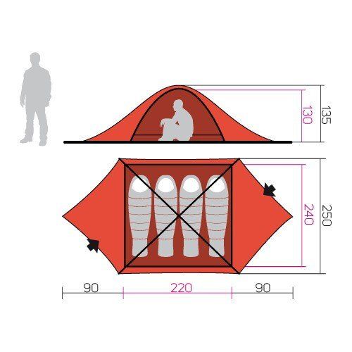 Чотиримісний трьохсезонного намет класичної конструкції, з двома тамбурами і алюмінієвим каркасом. Невелика вага, два входи і вітростійкий каркас, дозволяють використовувати цю модель не тільки для відпочинку на природі, а й у тривалих туристичних походах.