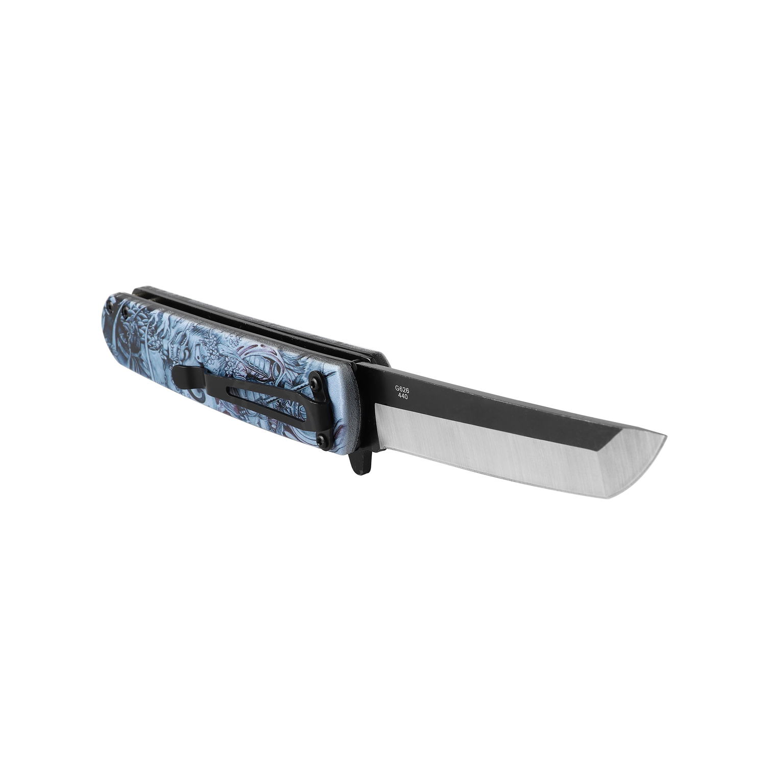 Ніж Ganzo 626 приємно здивує не тільки фанатів простих і практичних EDC-ників, але також і тих, хто вважають за краще певну «родзинку» в моделі. Тут такою є дизайн даного фліппера, для якого зробили 4 різних варіанти рукояті. Можна зупинитися на простому чорному кольорі, а можна вибрати щось із запропонованих екземплярів з малюнками. Це стильно виглядає, і допоможе власнику такого ножа виділитися із загальної маси користувачів.