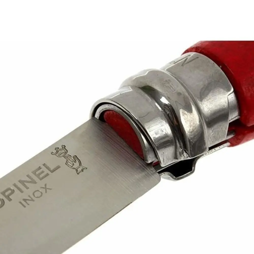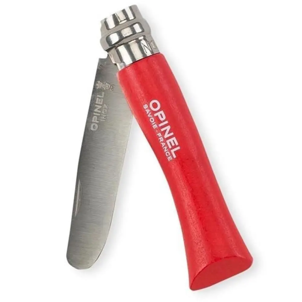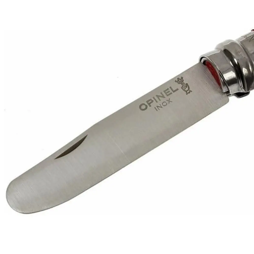 Дослівно назва ножа перекладається, як “Мій перший ніж Opinel” – ця модель виготовлена спеціально для початківців-користувачів ножів. Спеціально заокруглене вістря клинка запобігає небажаним травмам недосвідченого користувача при поводженні з ножем. Альтернативний спосіб застосування – ніж для масла.