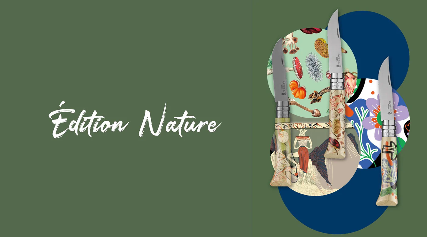 Ніж Opinel №8 VRI Limited Edition Nature — лімітована версія відомої моделі ножів Opinel №8 VRI. Limited Edition Nature віддає данину поваги природі, прикрасивши ножі трьома картинами відомих художників: Роммі Гонсалес, Міоше і Перрін Оноре. Квіткові композиції, хитромудрі завитки виткових рослин, гриби та інші флористичні деталі зображені на руків’ях.