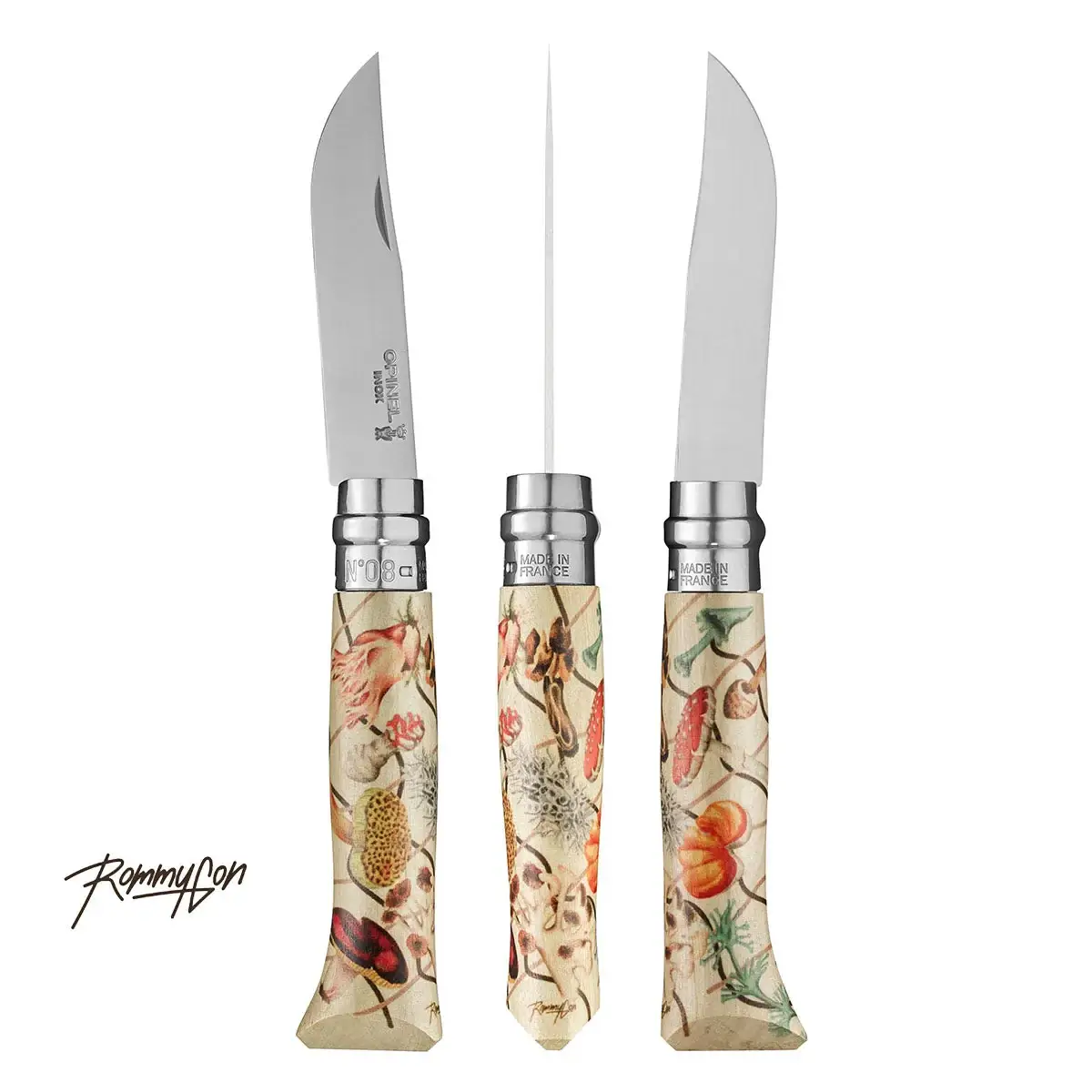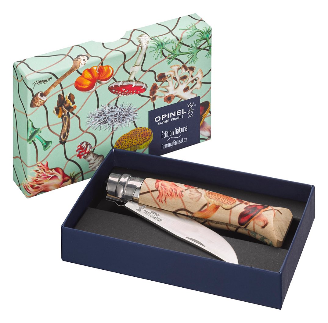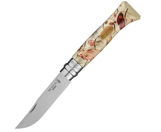 Ніж Opinel №8 VRI Limited Edition Nature — лімітована версія відомої моделі ножів Opinel №8 VRI. Limited Edition Nature віддає данину поваги природі, прикрасивши ножі трьома картинами відомих художників: Роммі Гонсалес, Міоше і Перрін Оноре. Квіткові композиції, хитромудрі завитки виткових рослин, гриби та інші флористичні деталі зображені на руків’ях.