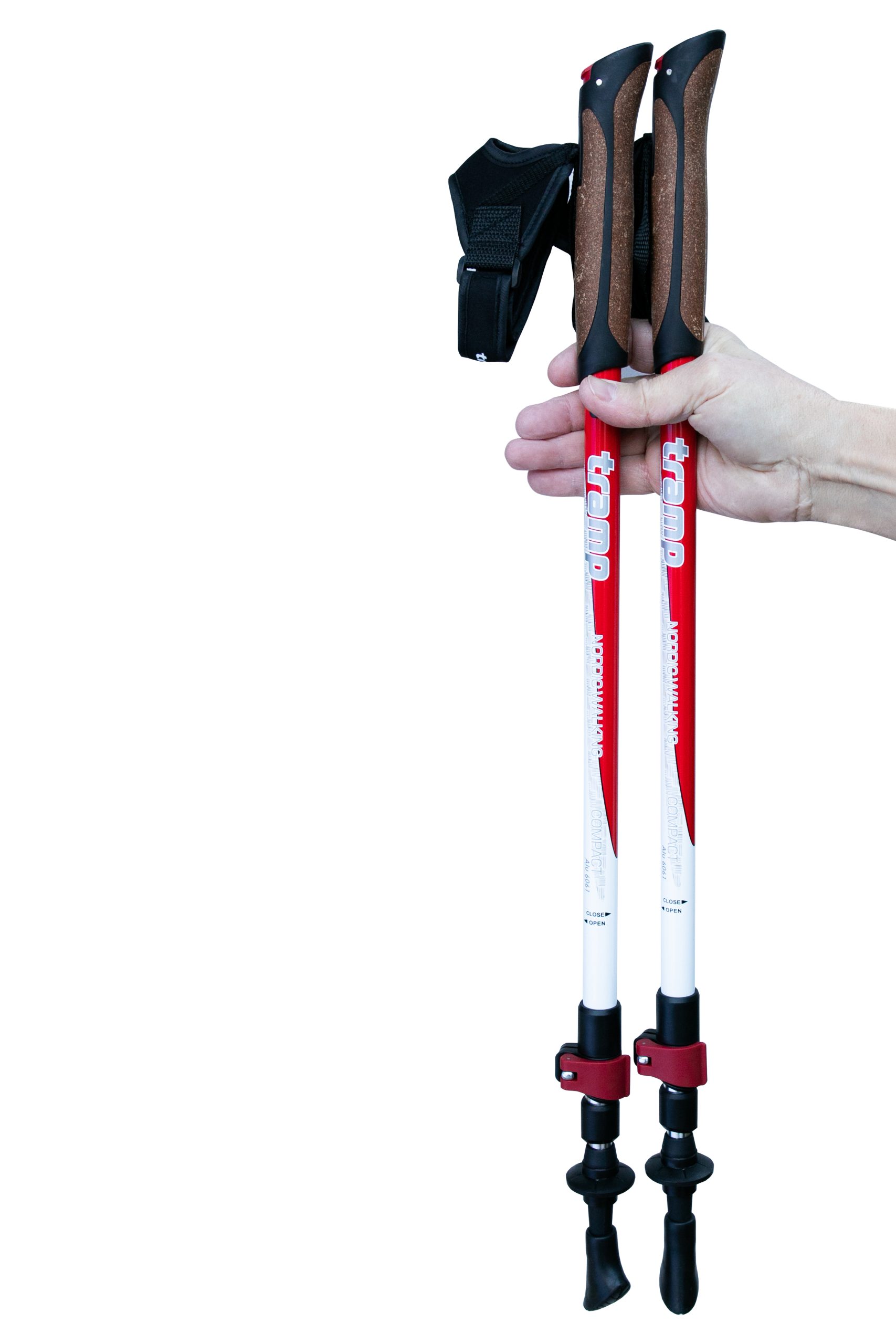 Трисекційні складні палиці для скандинавської ходьби Tramp Compact , зручні при транспортуванні за рахунок невеликого розміру в складеному вигляді.
