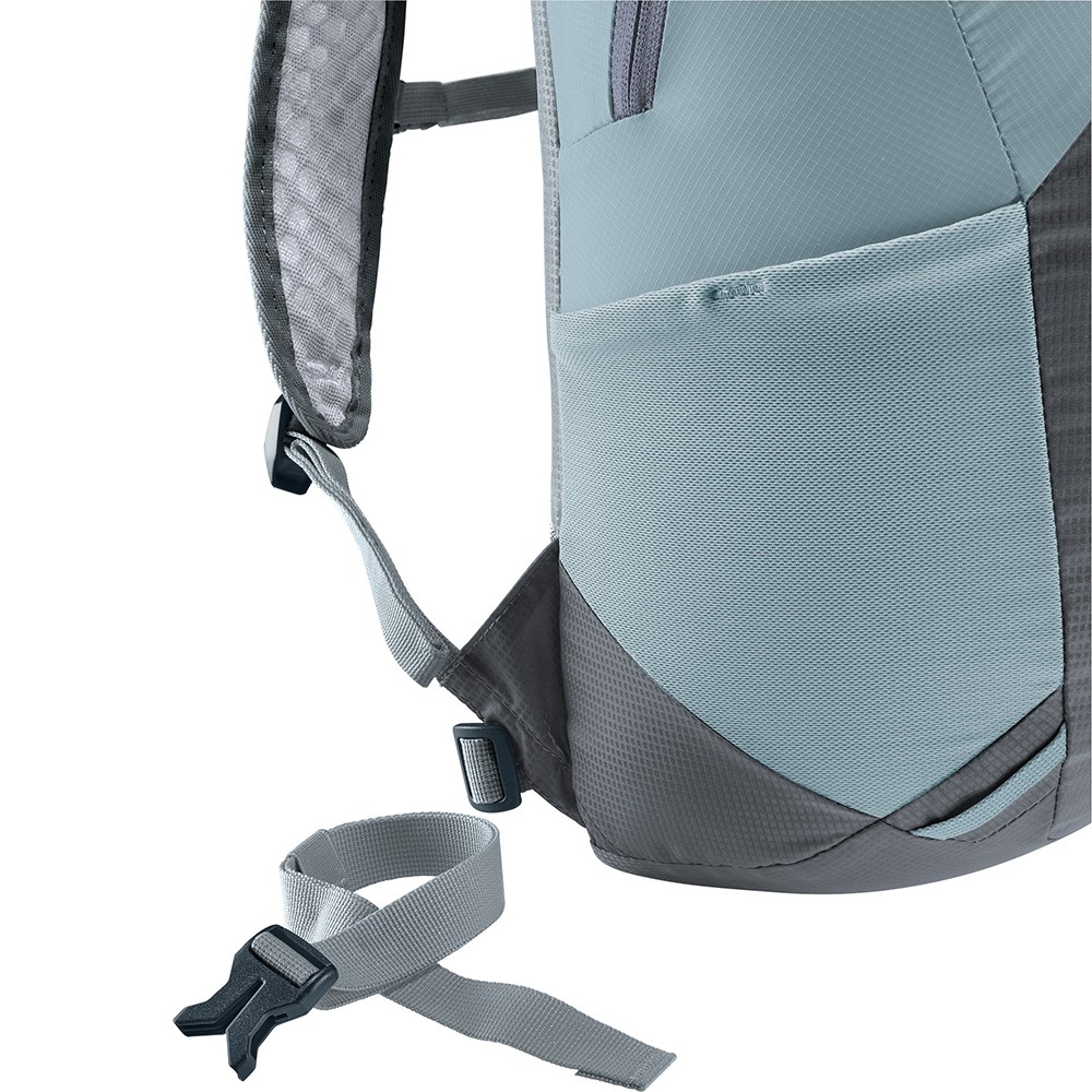 Цей рюкзак легкий і стійкий завдяки системі спини Deuter Lite, ергономічним перфорованим плечовим ременям, знімному поясному ременю, регульованому нагрудному ременю і 100% переробленої тканини для тіла, сертифікованої bluesign®. Бічні компресійні ремені, розроблені для швидких походів, ефективно зменшують розгойдування вантажу та забезпечують повний діапазон рухів. Це також допомагає заощаджувати енергію на великих відстанях.