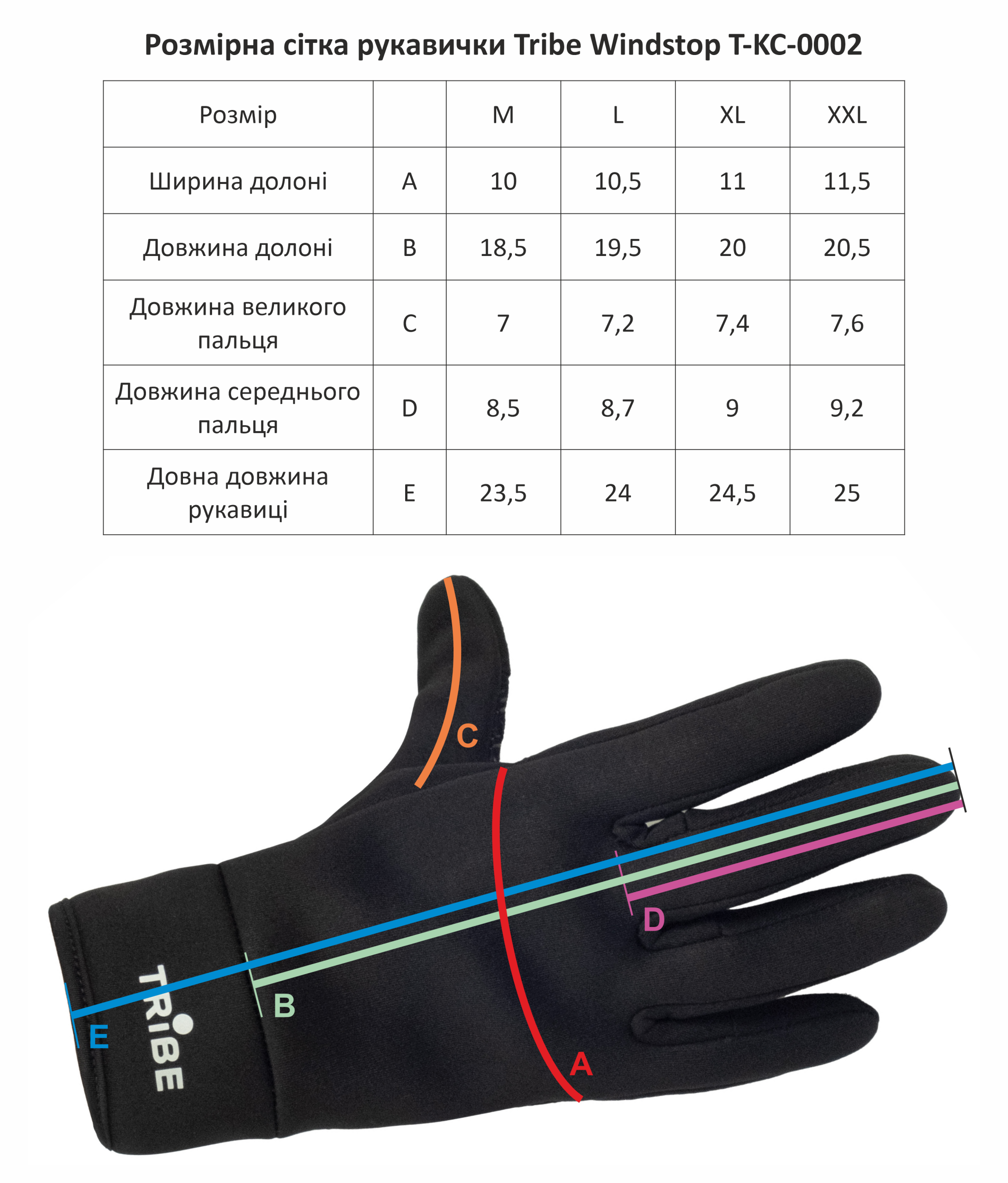 Рукавиці Tribe Windstop середньої товщини, захистять ваші руки від вітру, холоду та легкої вологи. Виготовлені з еластичного неопрену, всередині утеплені мікрофлісом. Зап’ястя рукавиць мають широку еластичну резинку. На долоні нанесено нековзкий принт, який дозволяє зручно утримувати речі в руці. На великому, вказівному та середньому пальцях є вставки сумісні з сенсорними екранами.