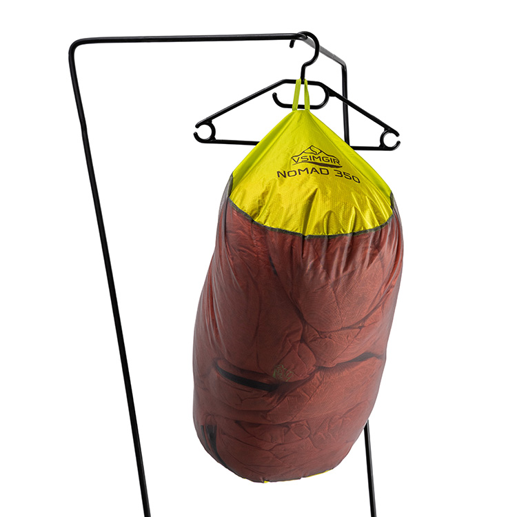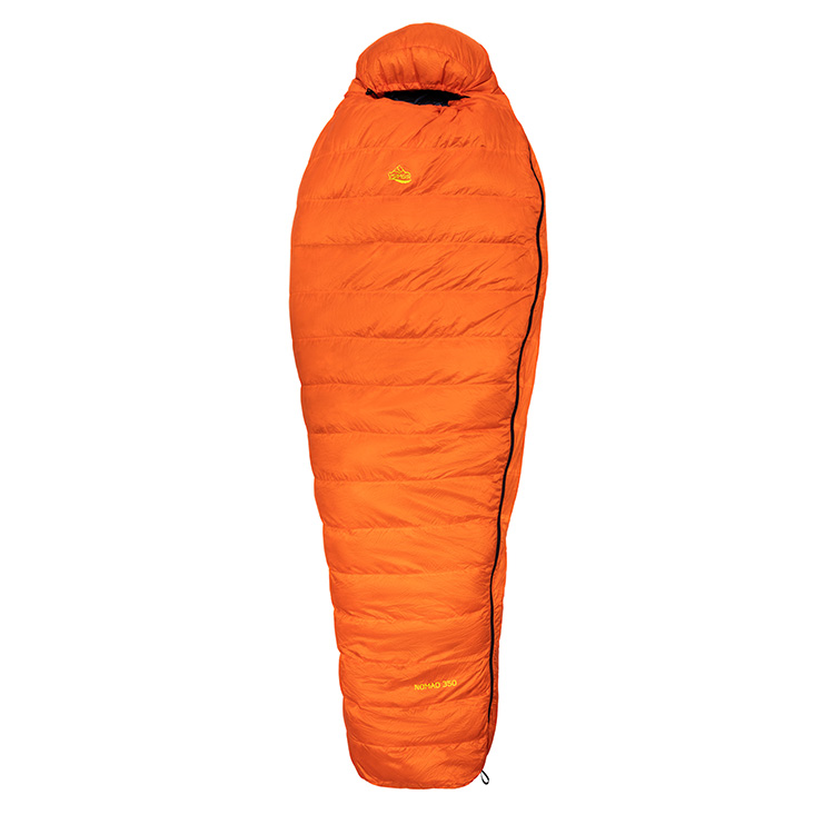 VsimGir Nomad 350 – легкий та практичний спальник на сезон від середини весни до середини осені. Натуральний матеріал наповнювача – гусячий пух високого класу, з пружністю FP820 – забезпечує відмінні теплоізоляційні властивості. Такий наповнювач перевершує усі синтетичні аналоги за показниками теплоізоляції на одиницю ваги. Також пух додатково оброблений гідрофобним засобом для забезпечення підвищеної стійкості до намокання і кращого розпушування. Виконаний мішок в формі “мумії”, що сприяє кращому збереженню тепла. Спальник зручно і швидко компресується у мішок.