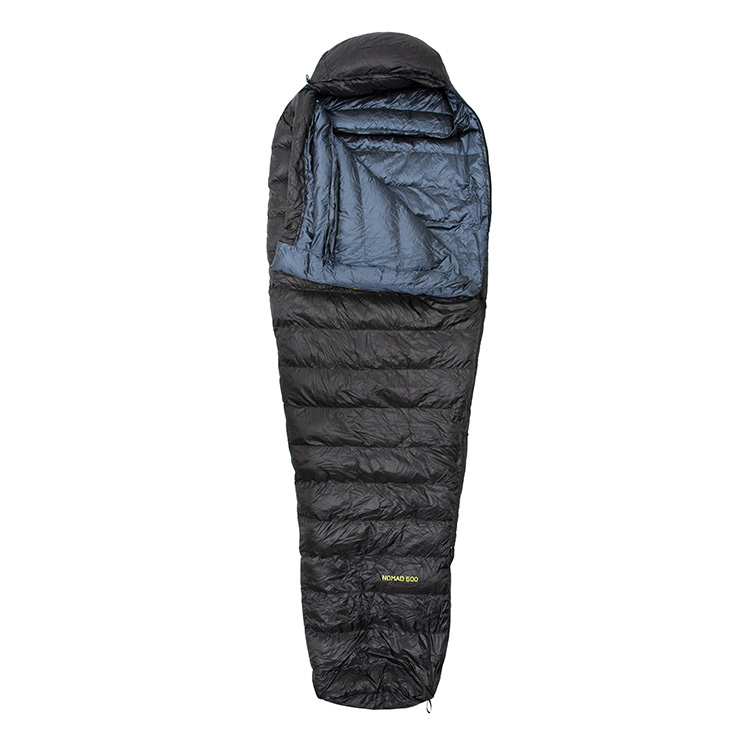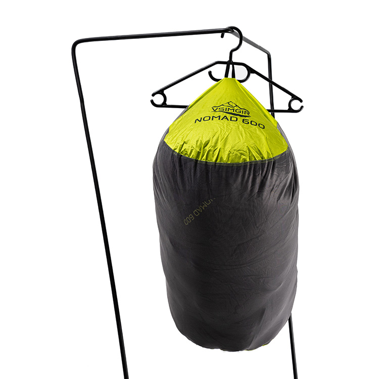 VsimGir Nomad 600 чорний – легкий та практичний спальник начотири сезони. Натуральний матеріал наповнювача – гусячий пух високого класу, з пружністю FP820 – забезпечує відмінні теплоізоляційні властивості. Такий наповнювач перевершує усі синтетичні аналоги за показниками теплоізоляції на одиницю ваги. Також пух додатково оброблений гідрофобним засобом для забезпечення підвищеної стійкості до намокання і кращого розпушування. Виконаний мішок в формі “мумії”, що сприяє кращому збереженню тепла. Спальник зручно і швидко компресується у мішок.